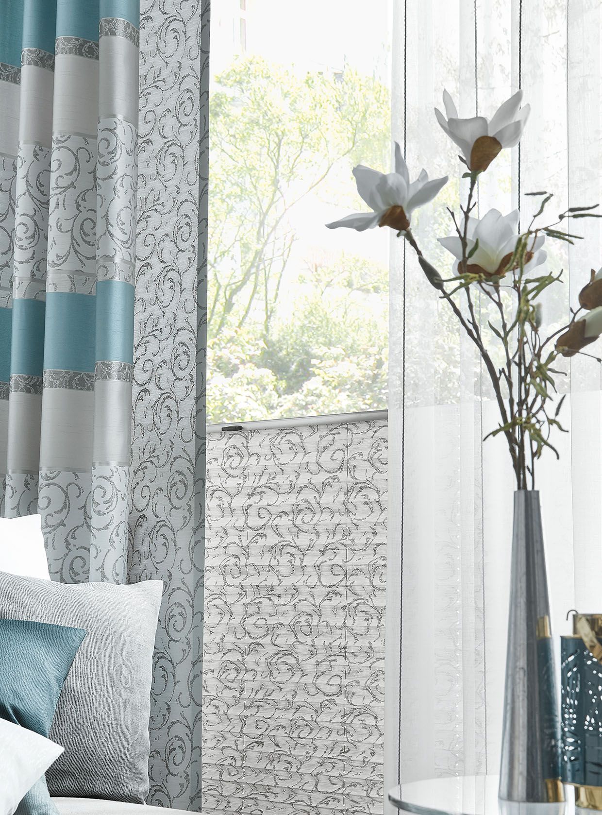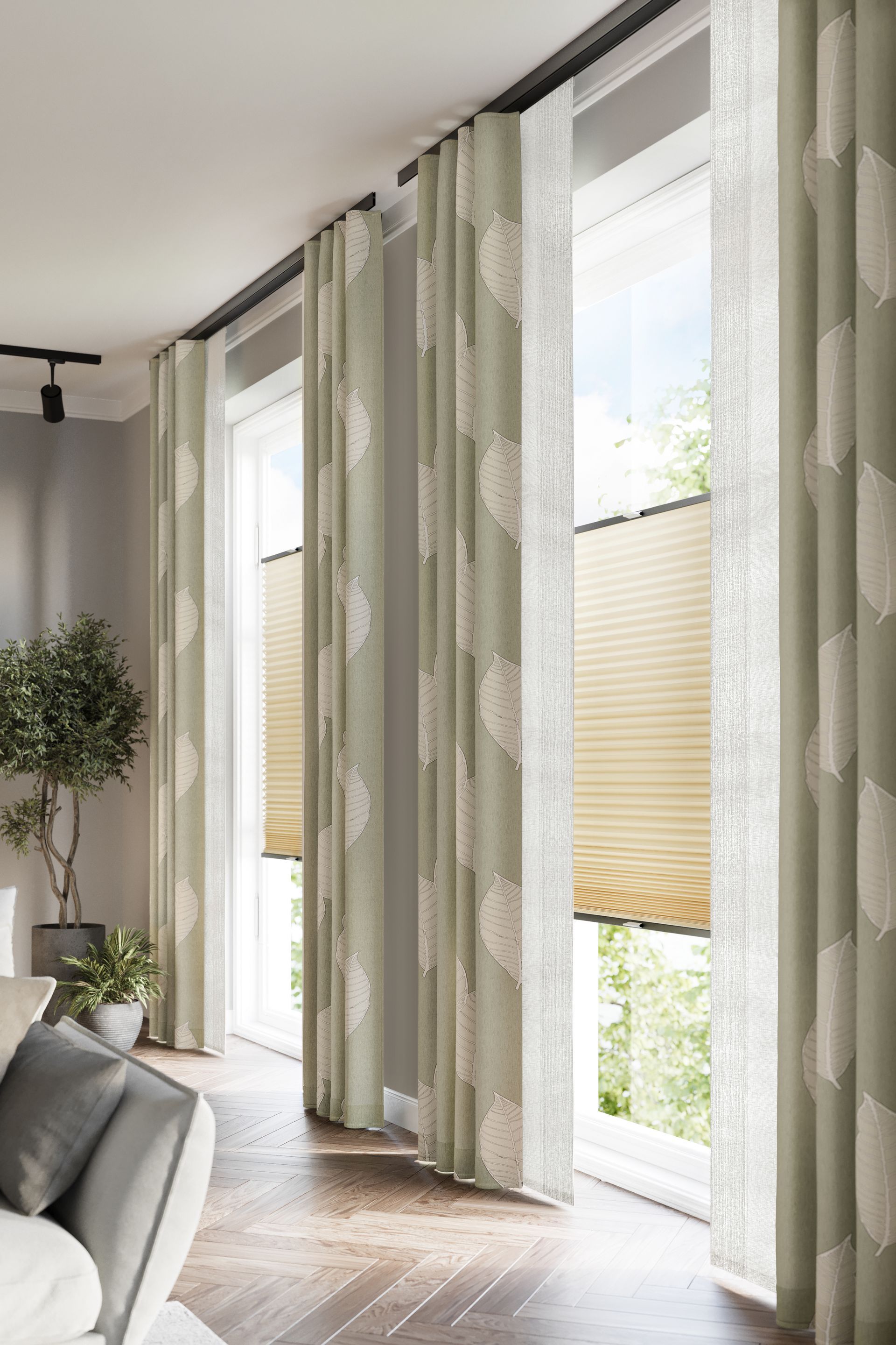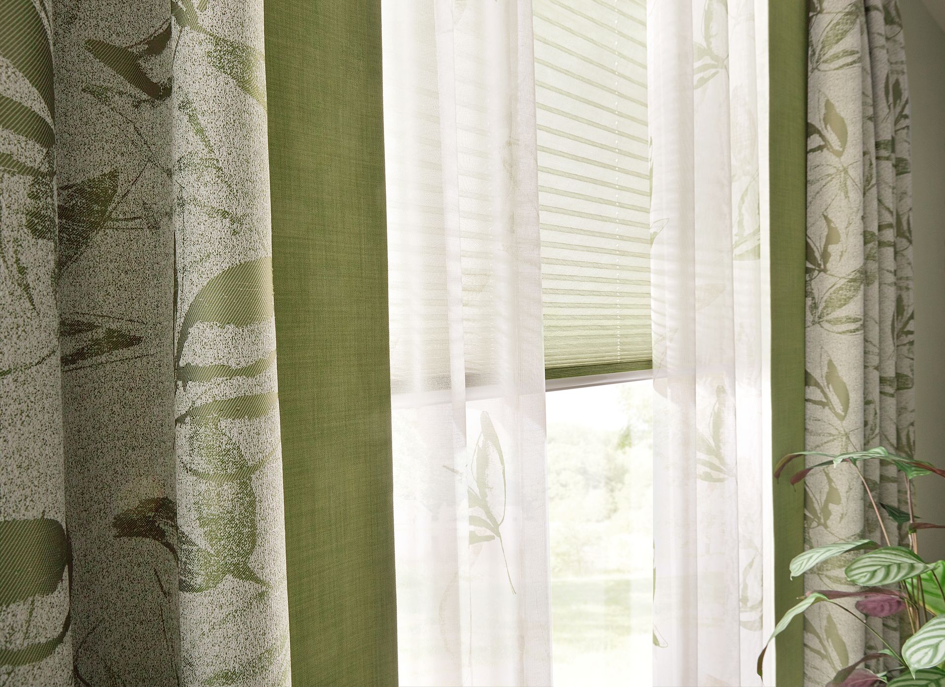 Verleihen Sie Ihrem Raum ein harmonisches Ambiente und genießen Sie den funktionalen Komfort unserer vielseitigen Sonnenschutzlösungen mit Jalousien und Plissees.